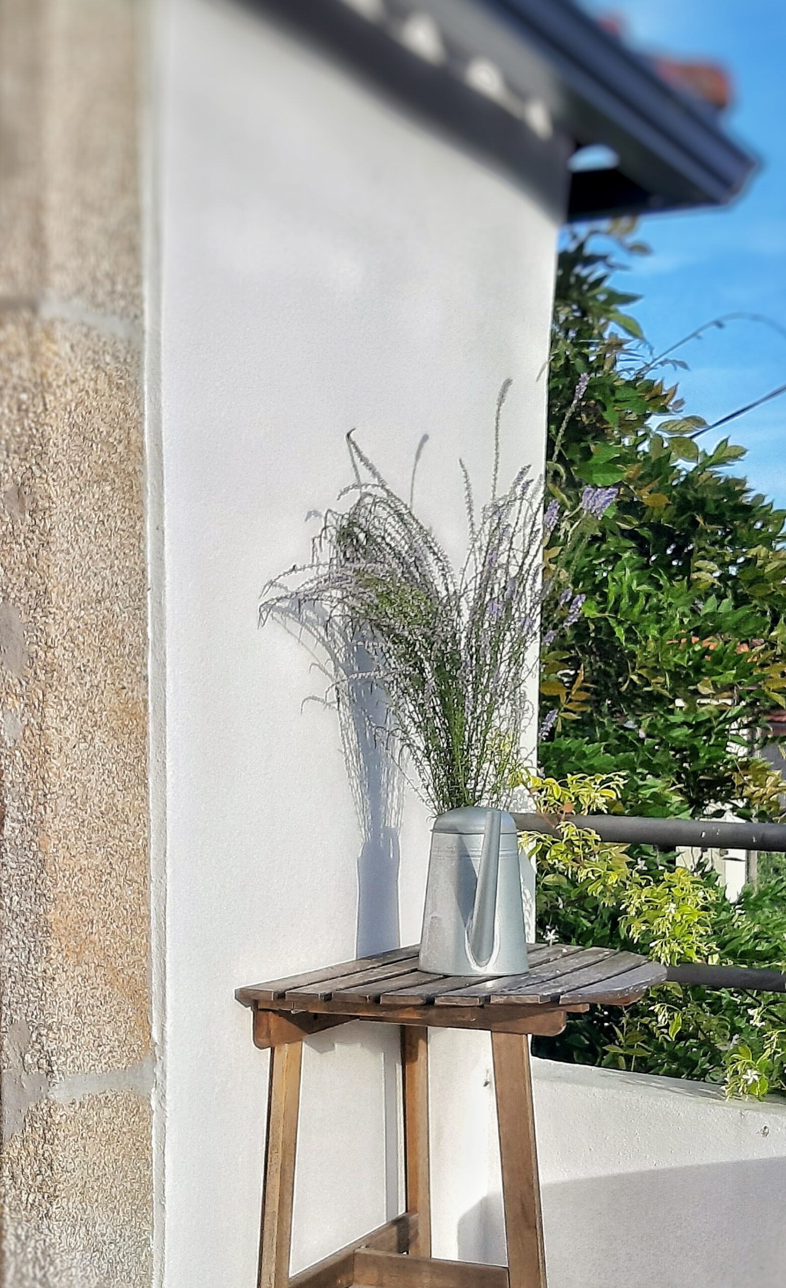 First floor with an independent entrance, approximately 45 square meters plus a 40 square meters terrace, accommodates 2 adults and 1 baby. Double bed (1.60 m x 2.00 m), optional free cot (0.60 m x 1.20 m) The Green Project toiletries, Egyptian cotton towels, shower, hairdryer, free Wi-Fi, safe (16l), Marshall speaker, kitchen equipped (fridge, induction hob, microwave, coffee machine, electric kettle, kitchen utensils), dining and sitting areas, heating, furnished outdoor terrace with unheated shower.
